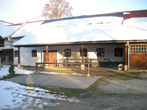 Als vorübergehende Unterkunft für Gastpferde oder kranke Tiere, die von der Gruppe separiert werden müssen, steht dieser Stalltrakt mit 3 Boxen zur Verfügung.