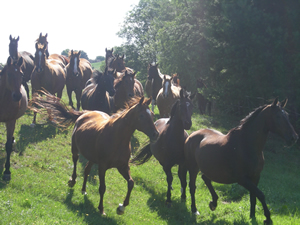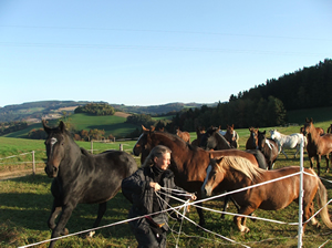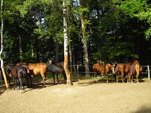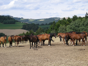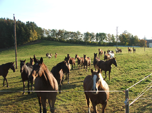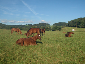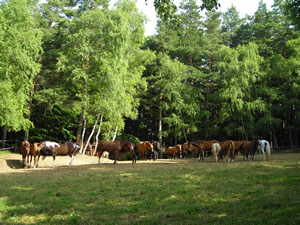 Die Weidesaison geht von Mai bis Oktober. Während dieser Zeit genießen die Pferde bis auf wenige Ausnahmen, die aus gesundheitlichen Gründen nicht mit dabei sein dürfen, die Ganztagsweiden. Alle Weiden sind über unterirdische Zuleitungen mit Wasser versorgt. Mehrere Tränken mit ausreichendem Zulauf garantieren auch bei größerem Andrang für entsprechende Wasserversorgung. |