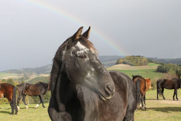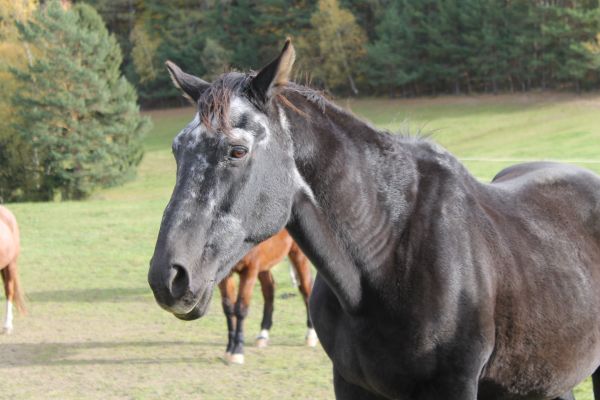 Er war bei seinen Menschenfreunden sehr verschmust, konnte aber als sehr ranghohes Tier seine Kollegen sehr Bestimmt in die Schranken weisen. Vielen frechen Neuankömmlingen zeigte er souverän die Herdenregeln. An seinem stattlichen Aussehen hatte eine Stute alsbald Interesse gezeigt und ihn dauerhaft an sich gebunden. Dass er ein wenig im Gesicht ergraute, kratzte nicht an seinem stolzen Erscheinungsbild und ließ ihn nur weiser erscheinen.